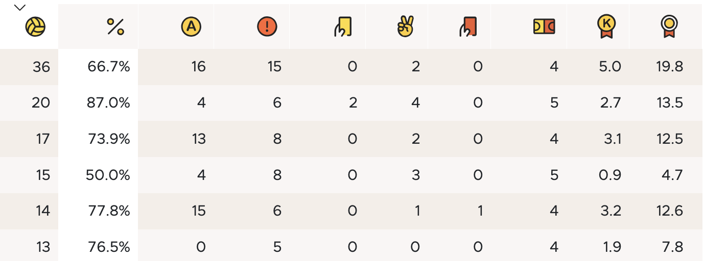 • uttellingsprosent (i spill og på 7-meter)
