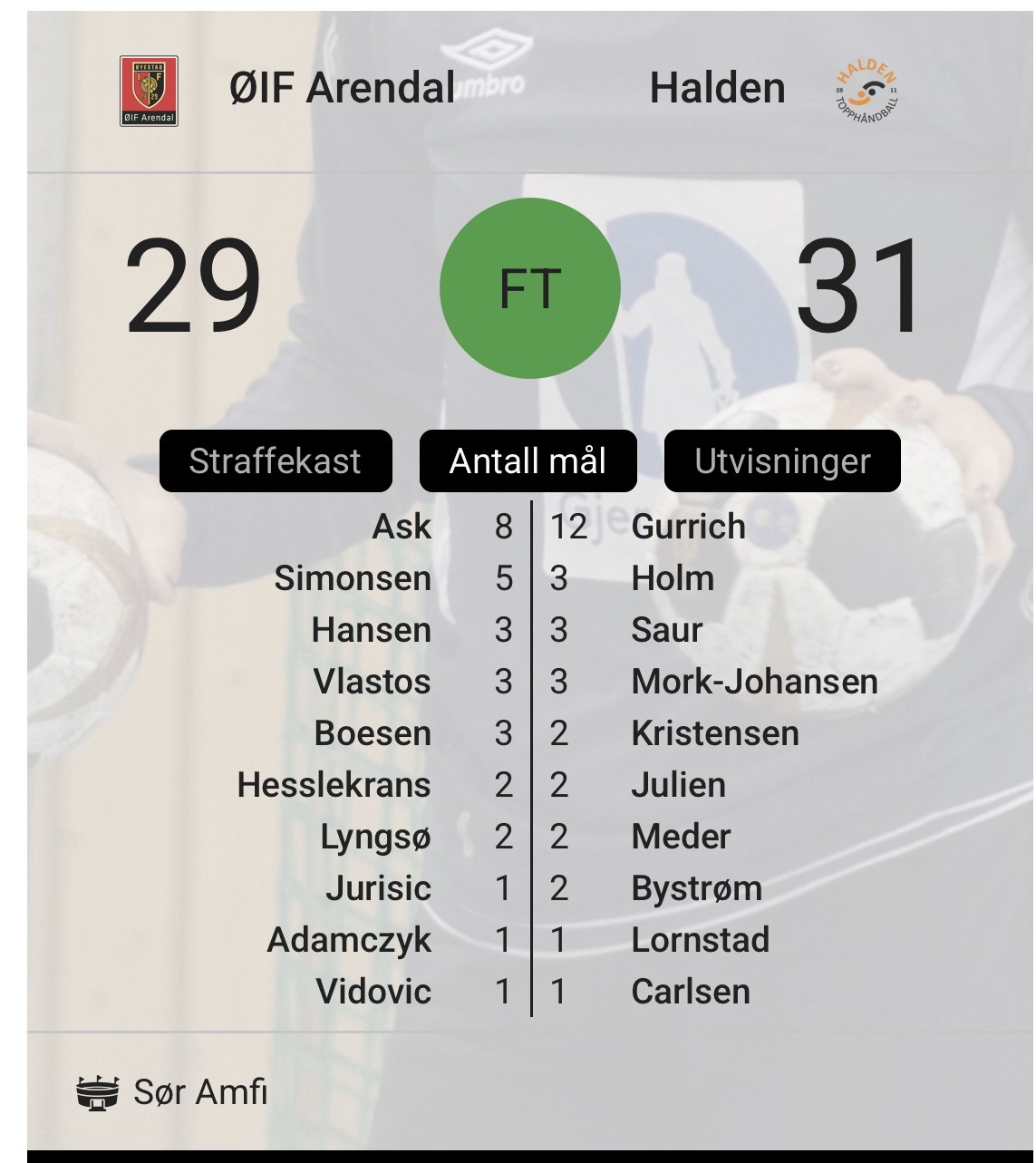 To tidligere Kragerø‑spillere stod i sentrum da ØIF Arendal og Halden Topphåndball barket sammen i REMA 1000‑ligaen søndag kveld. I en tett og dramatisk kamp som endte 31–29 til Halden, ble både Vemund Nordheim Ask og Eivind Stärk Gurrich kåret til sitt lags beste spiller – og begge endte som toppscorere.