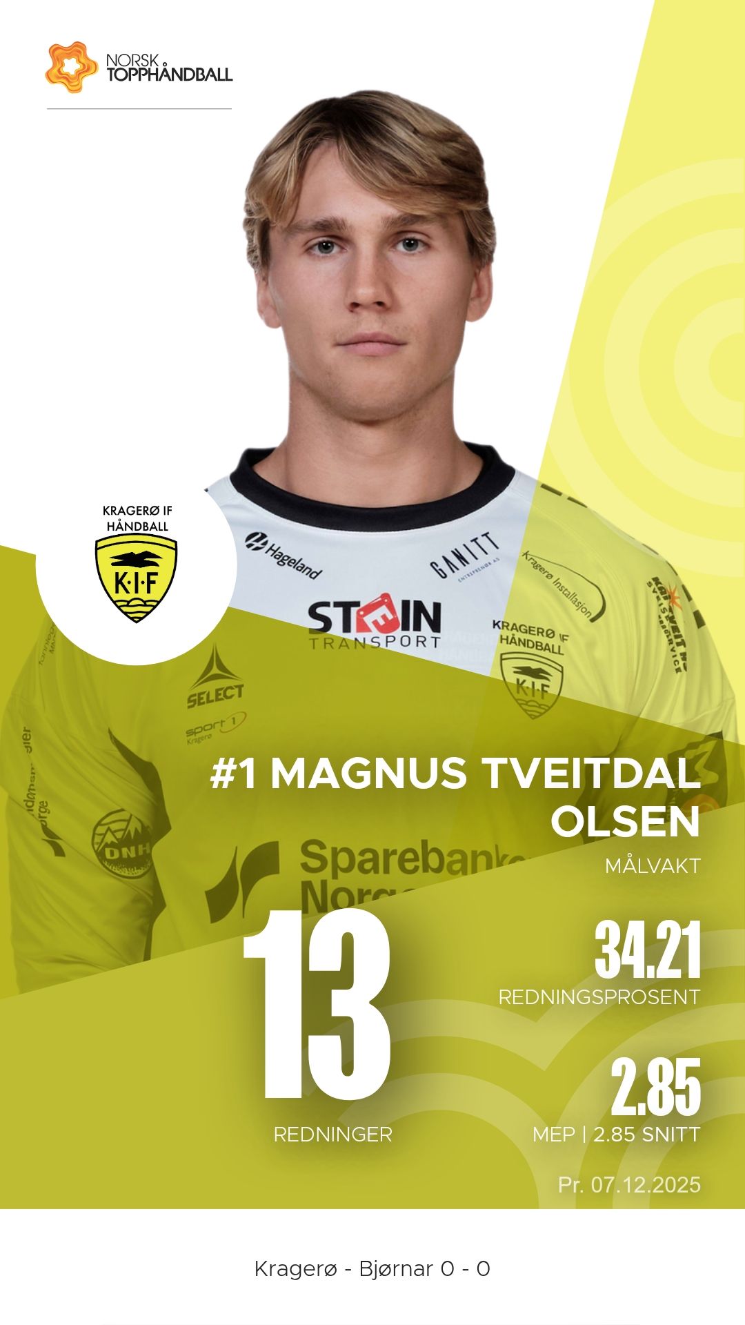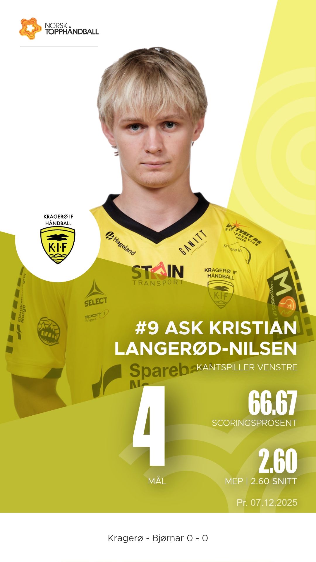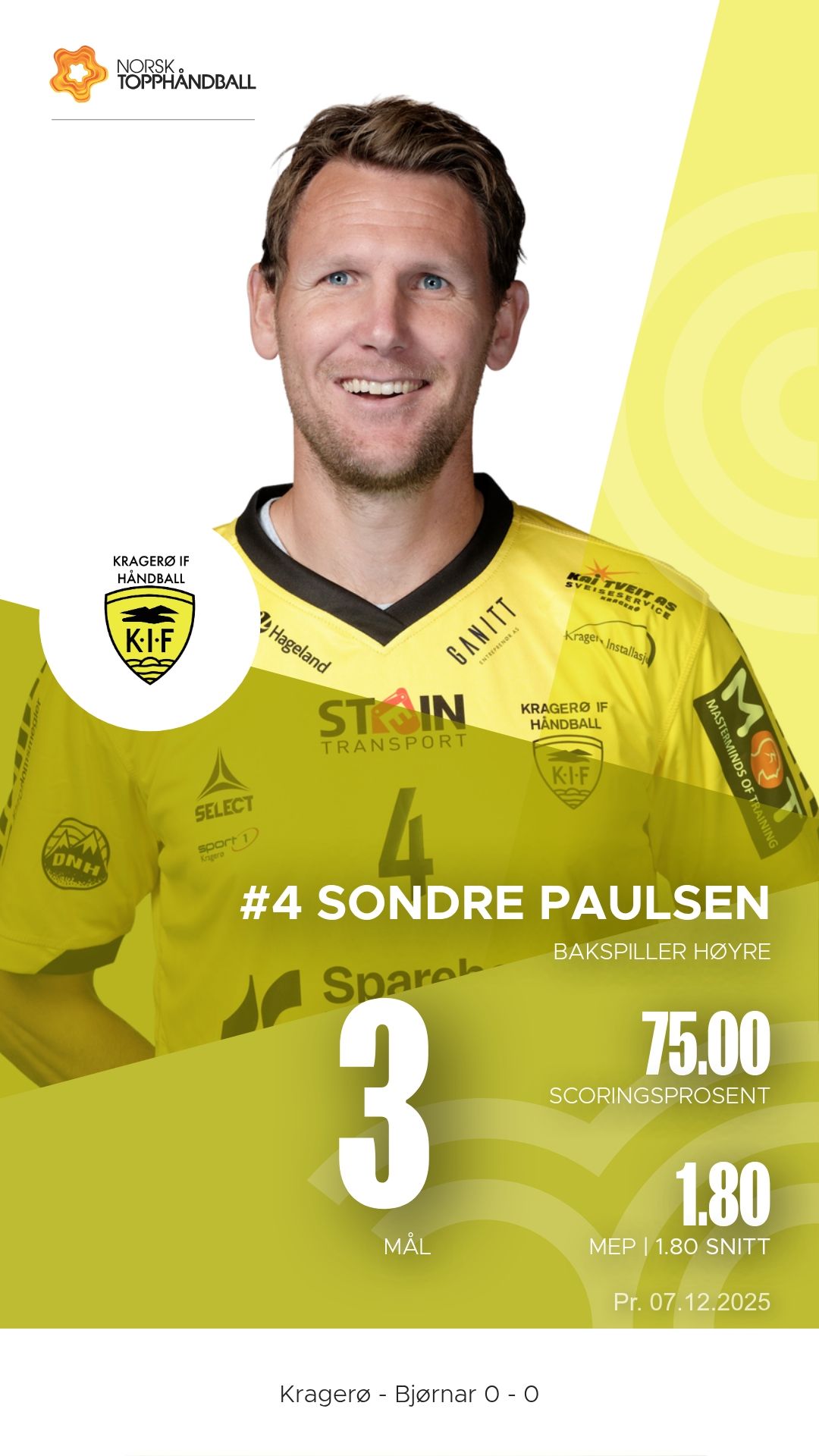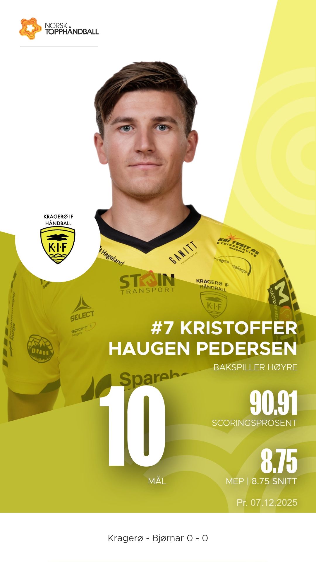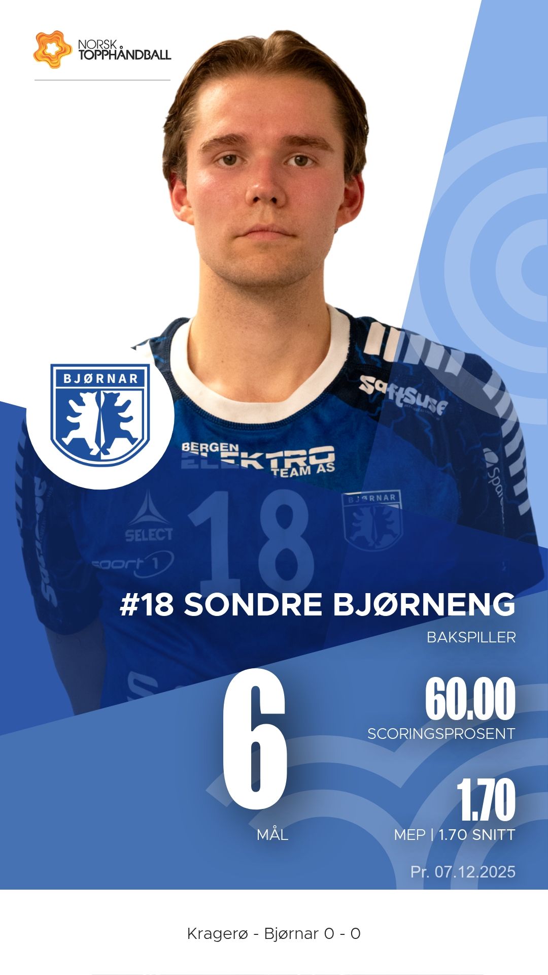 Kragerø tok imot Bjørnar i Kragerøhallen bane 1 søndag 7. desember 2025 til en intens kamp i 1. divisjon sesongen 2025–2026. Hjemmelaget vant til slutt 28–26 etter å ha ligget under ved pause.