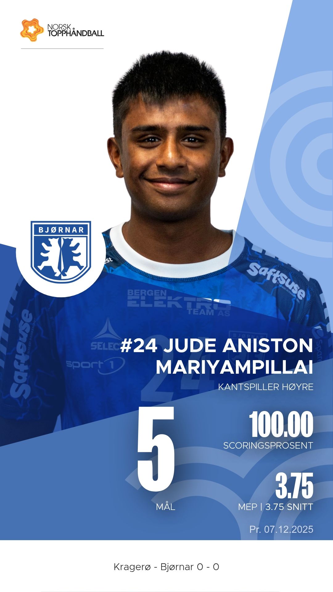 For Bjørnar var Jude Aniston Mariyampillai lagets mest effektive spiller med fem mål uten bom. Bakspiller Hans Magnus Garnes og Sondre Bjørneng hadde også gode perioder, men laget slet med å bryte ned Kragerøs forsvar i sluttfasen.